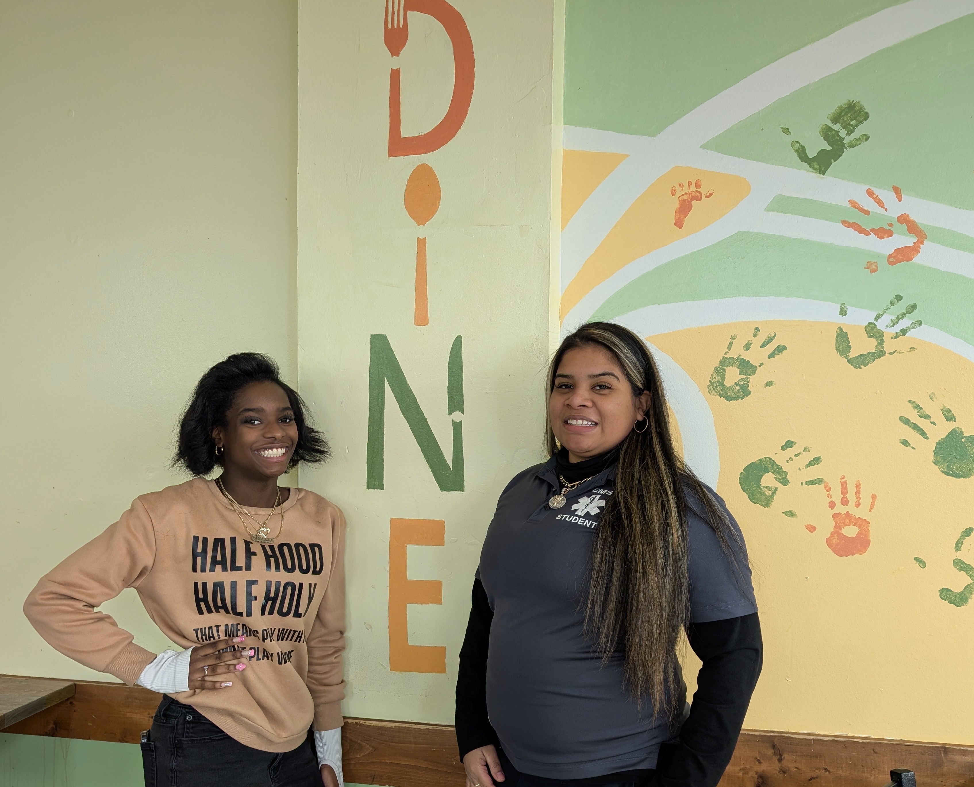 Meet our February volunteer of the month: Diamond Acres. Diamond has been volunteering at the Meal Center for about 3 years. She initially came in on her own (as fill-in for her first year) and is passionate about feeding people. Diamond organized a group from her church, Shoreline Church in Old Lyme, that volunteers for the dinner meal on the 5th Thursday of the month. Diamond is pictured with her sister, Heaven, whom she has custody of. Heather and her friends from NFA are part of the church group and enjoy helping with meal prep, serving, and clean- up. Both Diamond and Heaven are anchored in their faith and have a strong desire to give back to the community. Besides volunteering with the church group, Diamond volunteers each Friday at the lunch meal. She is also a volunteer EMT at the New London firehouse and leads her church’s homeless ministry in a mission to set up transitional housing for those in need. Thank you, Diamond, for your dedication to the needs of the patrons of the Meal Center